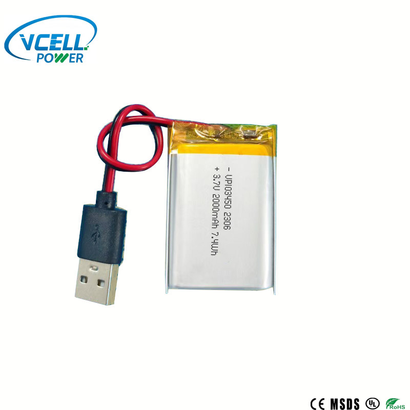 3.7V 2000mAh 103450 Li Polimer Bateri berdasarkan bahan sel berkualiti tinggi, mempunyai kapasiti yang mencukupi, dan jaminan kualiti.