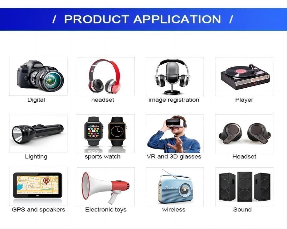3.7V 2000mAh 103450 Li Polymer Battery is widely used to Bluetooth speakers, portable amplifiers, radios, Bluetooth headsets, digital cameras, learning machines, power banks, selfie sticks, mini explosion-proof headlamps, high-intensity flashlights, emergency lights, head-mounted lights, mobile POS terminals, electronic dictionaries, handheld game consoles, et.
